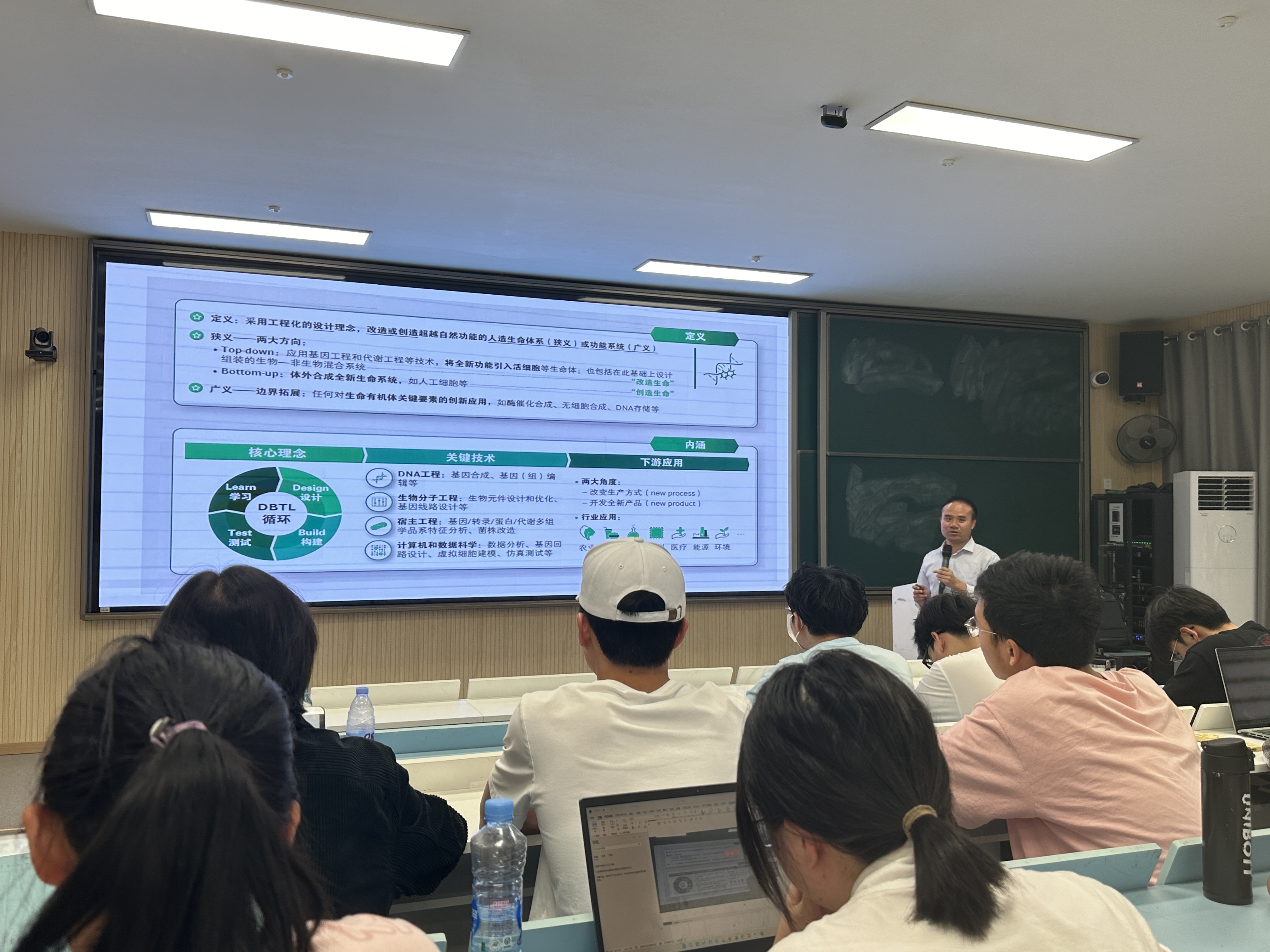 Starting with the definition of synthetic biology, Teacher Li Shengjie recounted the history and development of this discipline. He pointed out that synthetic biology is an intersection of biology, engineering, computer science and other disciplines, dedicated to designing and constructing biological systems with innovative functions. Through the presentation of practical cases and research findings, Teacher Li conducted an in-depth analysis of the extensive applications of synthetic biology in fields such as medicine, agriculture and energy, and expressed confidence in the future development prospects of this field.