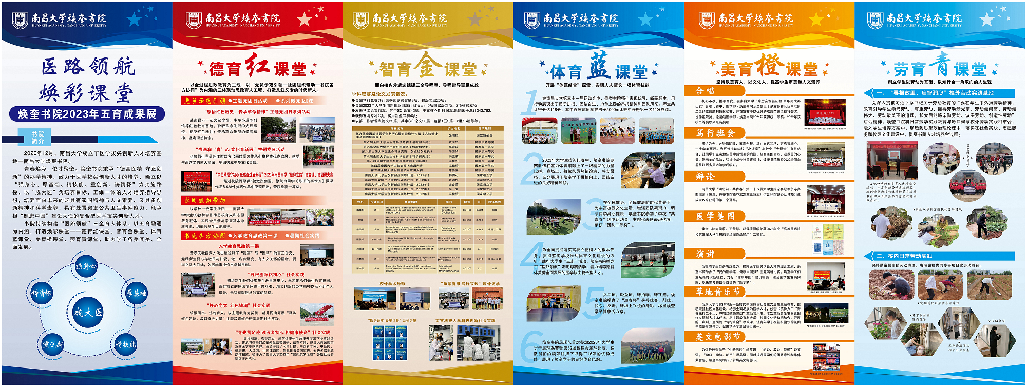 Adhering to the core of integrating Five Education, Huankui College has built the "Colorful Five Education Classes" – including Moral Education Red Classes, Intellectual Education Gold Classes, Physical Education Blue Classes, Aesthetic Education Orange Classes, and Labor Education Green Classes. Through diverse, multi-layered, and innovative forms, the college comprehensively improves students’ overall quality, cultivating medical professionals with great virtue, love, and capability. Over the past year, Huankui students have excelled in academic studies, research, competitions, social practice, and cultural and sports activities, achieving remarkable results.
