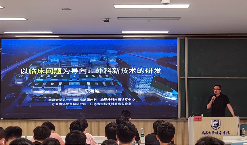 On September 11, the academy invited Chief Physician Xi Haibo, Deputy Director of the Department of Urology at the First Affiliated Hospital of our university, to deliver a cutting-edge surgical lecture titled "Clinical Problem-Oriented: Research and Development of New Surgical Technologies" to Huankui students. Starting from real clinical cases, he vividly analyzed the entire process of minimally invasive urological technologies from demand origination to R&D and implementation, unveiling the rigorous yet insightful practical path behind medical innovation for the students.